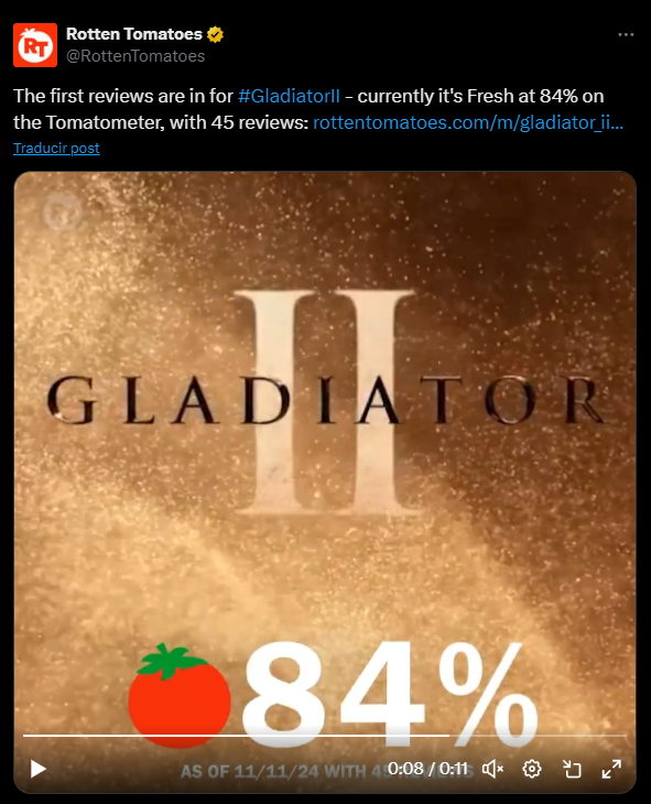 La esperada Gladiator II, dirigida nuevamente por Ridley Scott, ha debutado con un 84% de aprobación en Rotten Tomatoes, superando el 79% de la película original de 2000. Esta secuela, protagonizada por Paul Mescal como Lucius, sigue su historia al enfrentarse al general Marcus Acacius (Pedro Pascal), bajo órdenes del emperador Caracalla (Fred Hechinger). Críticos han elogiado especialmente la actuación de Denzel Washington y el enfoque fresco de la película.